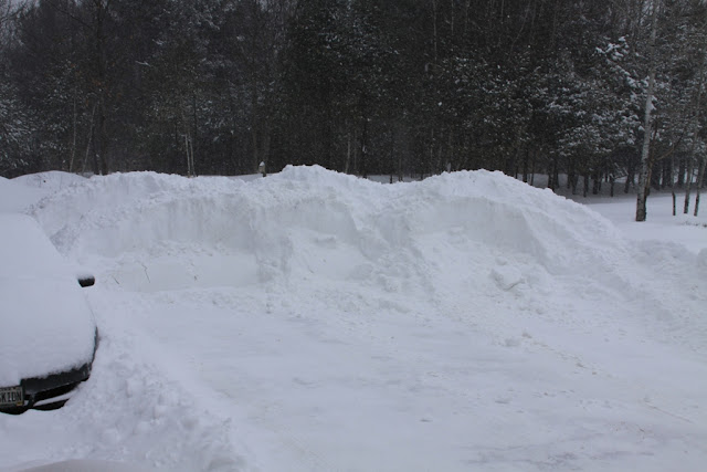 I'll start with Monday night. Everyone was buzzing about the big storm coming that was going to hit Maine on Wednesday. I wasn't feeling well - my bones ached and my stomach hurt and I was running a fever - the whole time thinking 'oh great, here comes the storm of the century and I'm going to get the flu'. When I woke Tuesday morning I realized what the issue was. My arthritis - which is degenerative - was acting up. I have it in my back in three places, in my hips, knees and fingers. One spot in my back is #3 (right below the base of my skull) and when that one swells I get migraines. I woke up with one of those migraines. I haven't had issues in many many years and I knew that this storm would be a good one just based on the splintering pain my joints were providing me. It was just a matter of waiting until the storm actually hit. Monkey was showing symptoms of the stomach bug including a fever so I decided we would hunker down and wait for all hell to break loose. We had a 'pre-storm' that dropped about 4" here during the day, Eddie came and plowed us out and Monkey felt well enough to shovel. I pulled it together and set up a shepard's pie and baked some beans in the slow cooker in case we lost the power at some point. School sent out their cancellation around 6:00 Tuesday night, evidently they were taking this storm seriously.